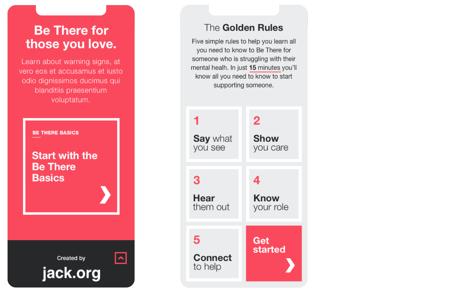 Building on the success of Jack.org, AKA designed and developed BeThere.org, a groundbreaking online mental health resource dedicated to helping young people learn how to identify mental health challenges in themselves and others.