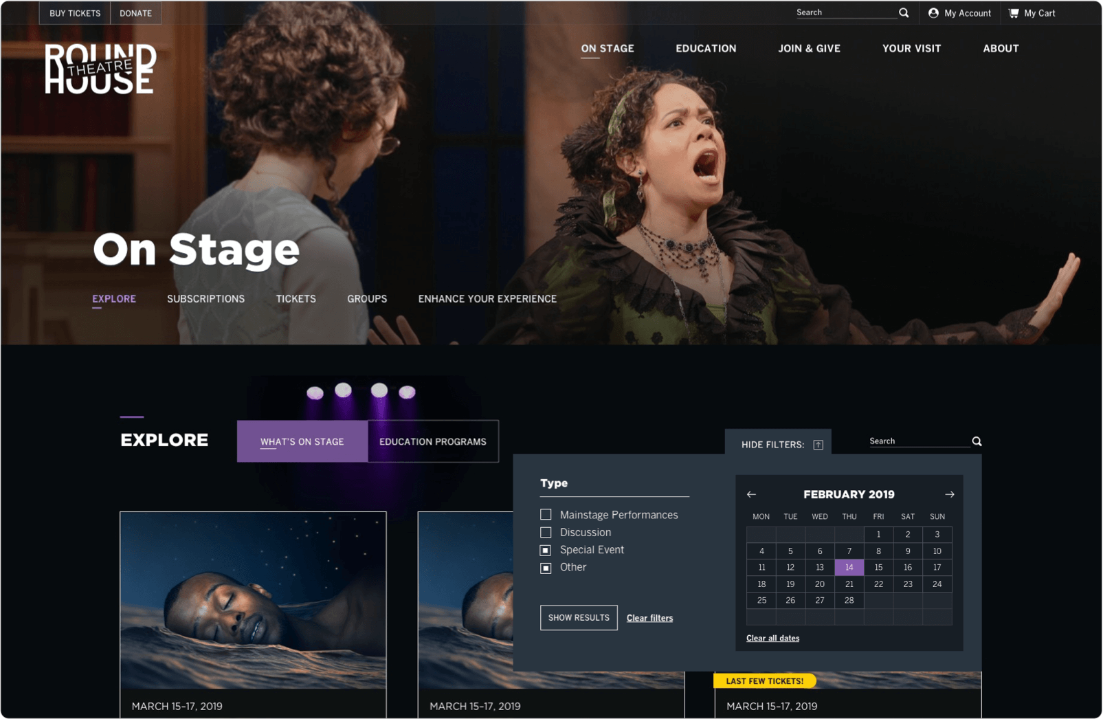 Round House Theatre needed a website that would showcase their groundbreaking productions, and reflect their rise as one of the top theatres in the Washington DC region. A partnership with AKA delivered a website that elevated their stature, and showed their offering in the best possible light.